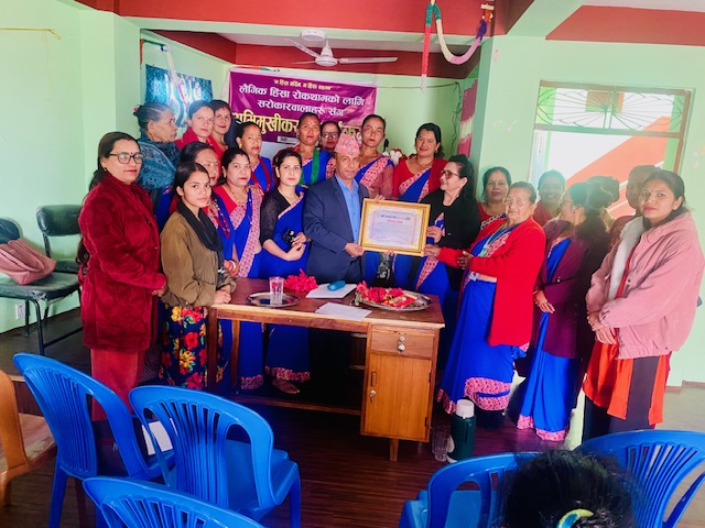 कार्यक्रममा नेपाल प्रहरी प्रमुखको जिम्मेवारी त छंदैछ ब्यक्तिगत रुपमा पनि लैंगिक हिंसा बिरुद्धमा संस्थासंग सहकार्यमा पुर्याउनु भएको सहयोगको प्रशंसा गर्दै आईतबार नारी जागरण केन्द्र तथा नारी विकास सहकारी संस्थाको सयुक्त आयोजनामा भएको कार्यक्रममा केन्द्रका वरिष्ठ संस्थापक सदस्य,संम्रक्षक तथा जेष्ठ नागरिक चित्र कुमारी भण्डारीले टिका र आशिर्वाद दिदै उहाँको सम्मान गरिएको थियो ।
