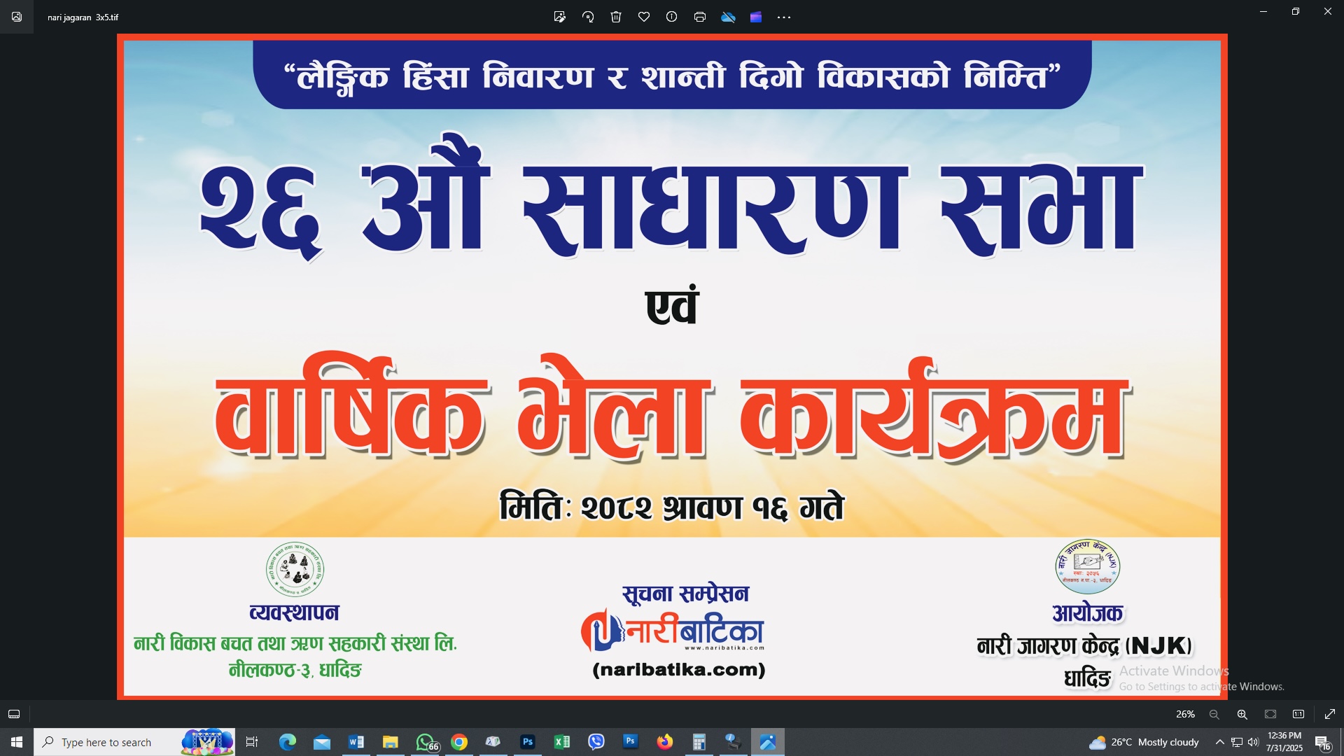 नारी जागरण केन्द्र धादिङको आज २६ औं वार्षिक साधारण सभा तथा नारी संन्चारको पाँचौं वार्षक उत्सव हुने भएको छ ।