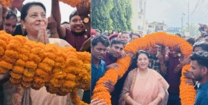 पुर्वराष्ट्रपति भण्डारीलाई बारामा ५१ किलोको मालाले सम्मान