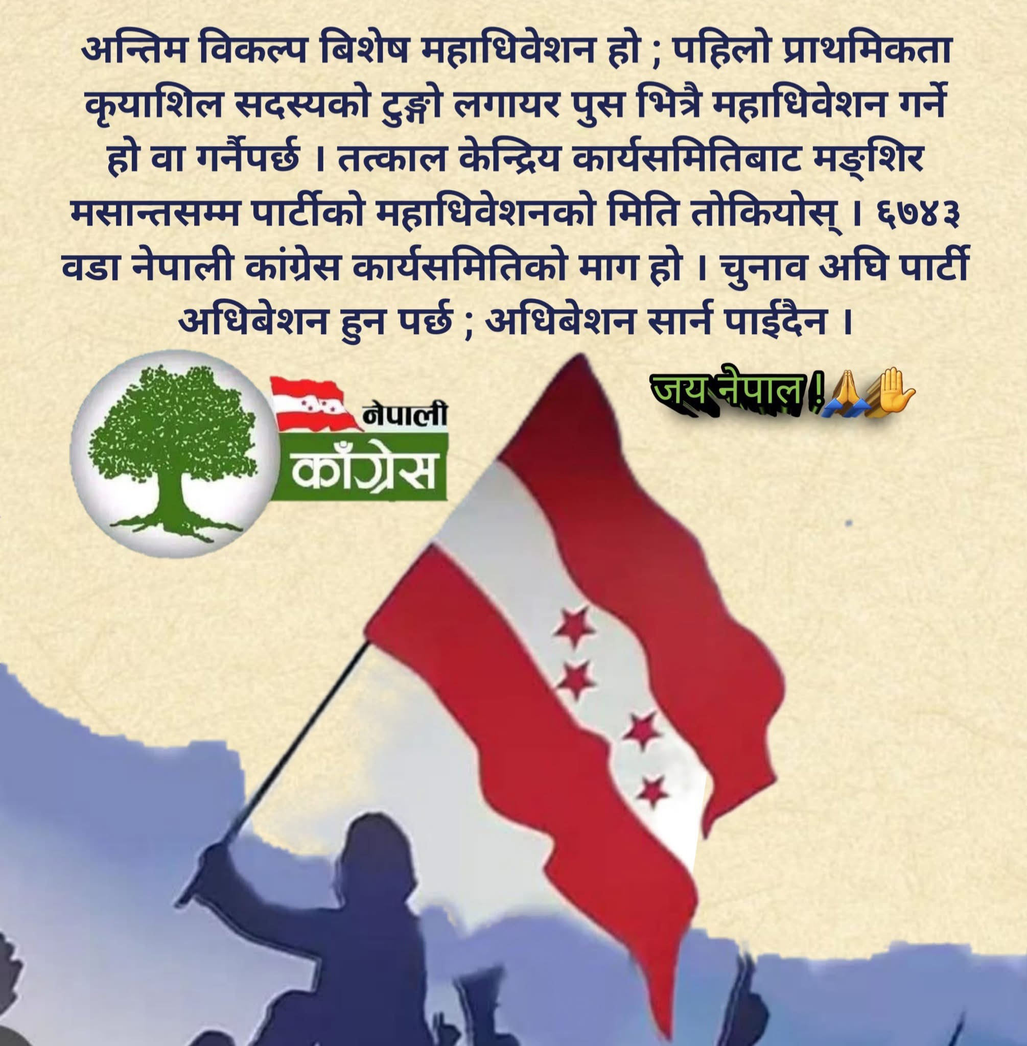 गत भदौ २३,२४ को जेनजी आन्दोलनपछी सुरु भएको देशका सवै राजनितिक दलहरुमा युवा नेतृत्वको चरम रुपमा आवाज उठिरहँदा यस विषयले नेपाली काँग्रेसमा त झनै स्थान ओगटेको अवस्था छ । २८ असोजदेखि सुरू भएको कांग्रेस केन्द्रीय कार्यसमिति बैठकमा चुनावअघि महाधिवेशन गर्नु पर्ने र गर्न नहुने विषयमा नेताहरू विभाजित भएका छन्।