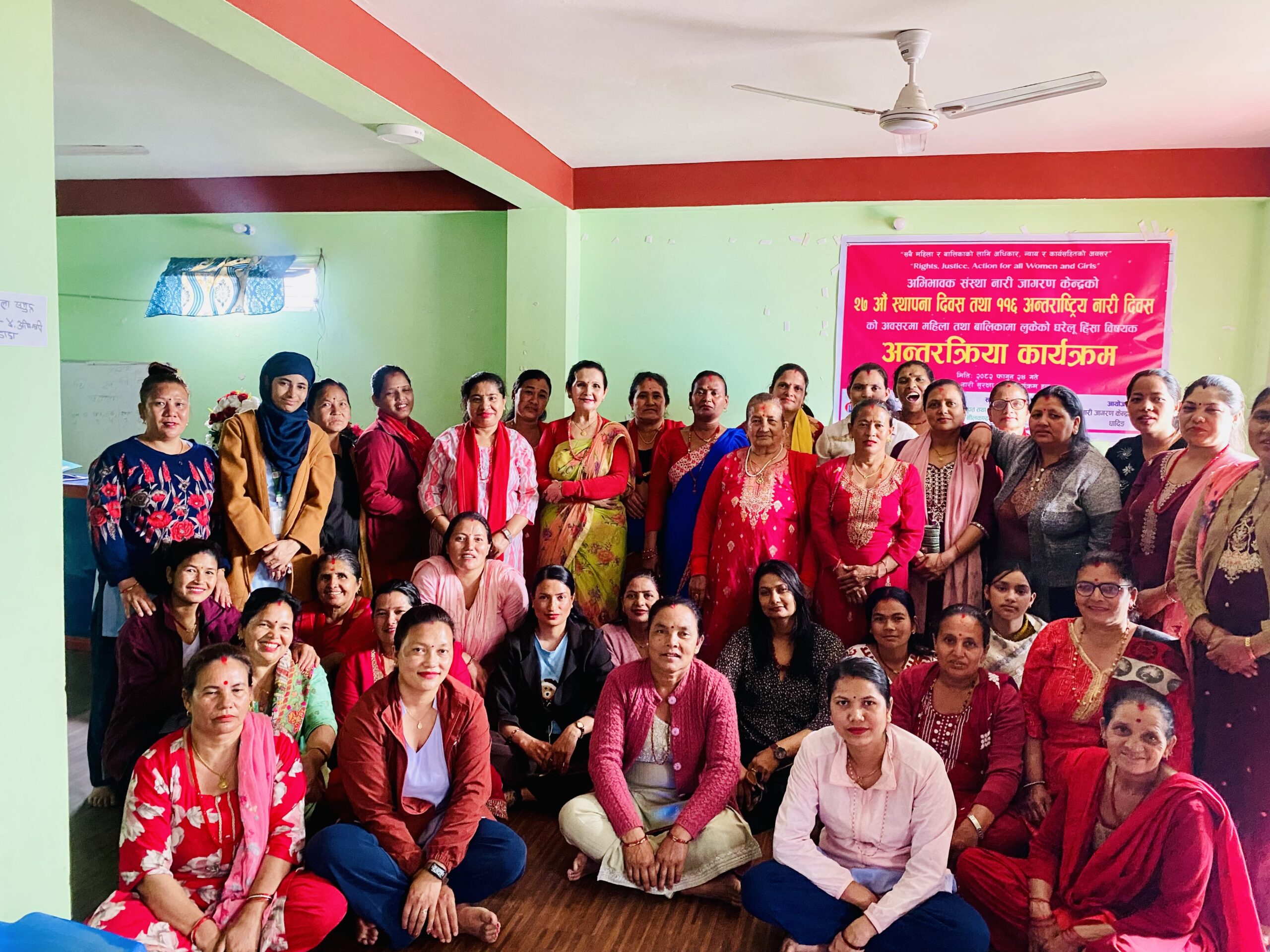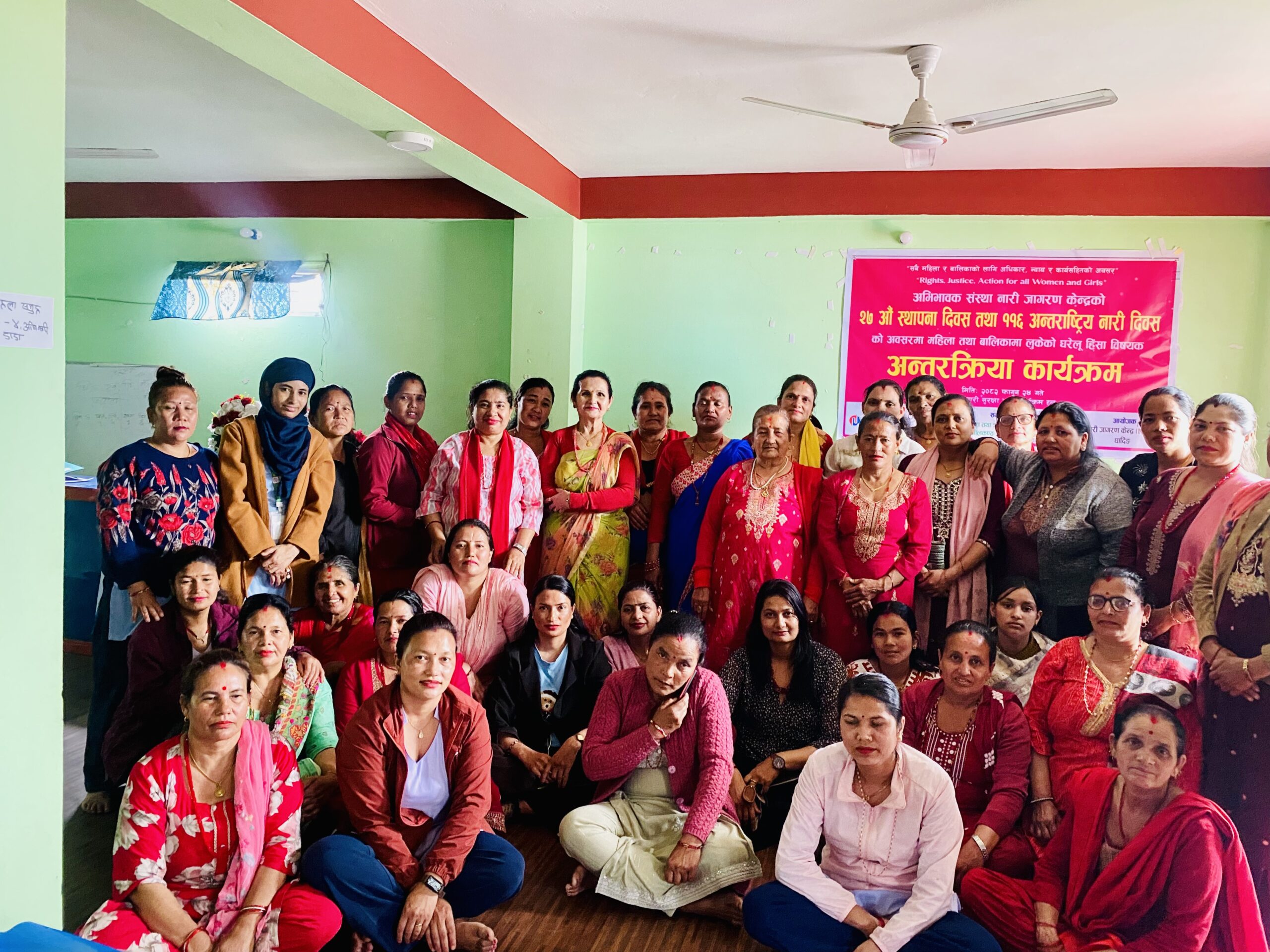 यसै दिवसका अवसरमा नारी जागरण संस्थाले ११६औं अन्तर्रराष्ट्रीय नारी दिवसको सन्धर्वमा संस्था अन्तर्रगतका समितिका पदाधिकारीहरु,कर्मचारीहरु,समुह तथा समुदायका महिलाहरुलाई सहभागी गराई घरेलु हिंसा तथा लैंगिक हिंसाविरुद्धको सचेतनामुलक कार्यक्रम गरी मनाएको छ ।