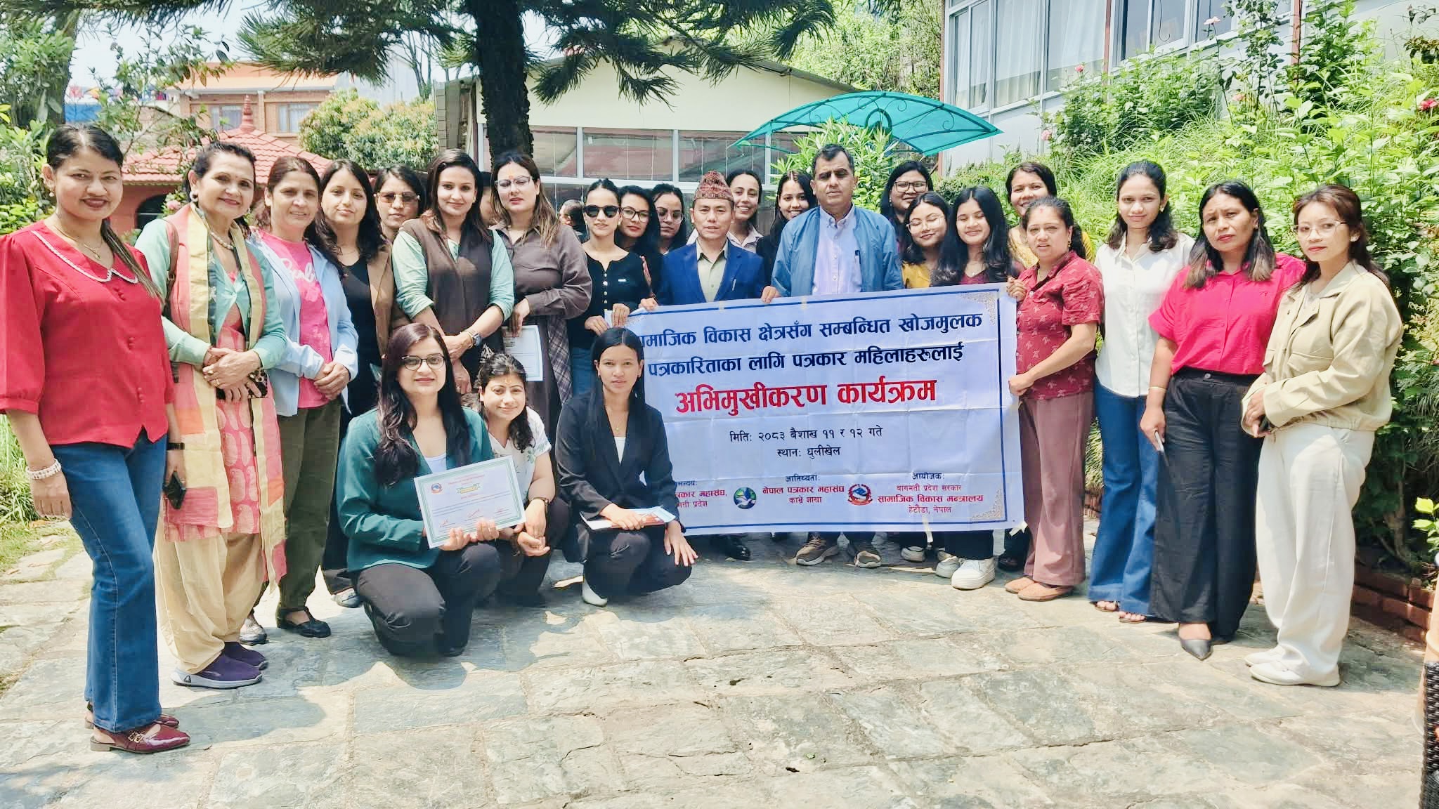 बागमती प्रदेश सरकार,सामाजिक विकास मन्त्रालयको आयोजना तथा नेपाल पत्रकार महासंघ बागमती प्रदेशको समन्वयमा धुलिखेलमा सम्पन्न दुई दिने ‘खोजमूलक पत्रकारिता तथा एआईको प्रयोग’ सम्बन्धि अभिमुखीकरण कार्यक्रम शनिबार सम्पन्न भएको हो ।